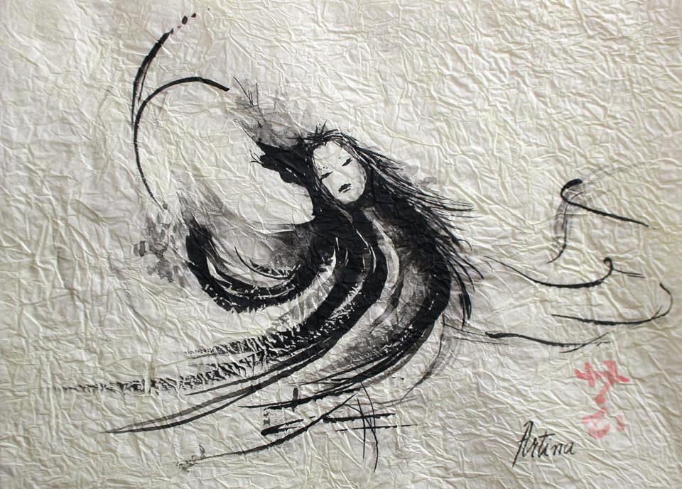 Istočnjački motivi u tehnici laviranog tuša.